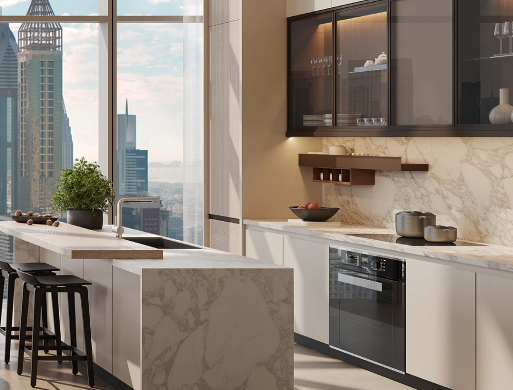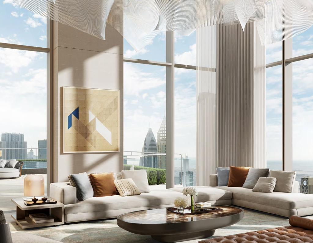 The three-bedroom residences speak to a life of elevated sophistication. Expansive living and kitchen areas are framed by soaring double-height ceilings and wrapped in floor-to-ceiling glass, capturing uninterrupted views of the city skyline. The master bedroom features a walk-in closet, spacious balcony and a private sanctuary that invites rest and restoration.